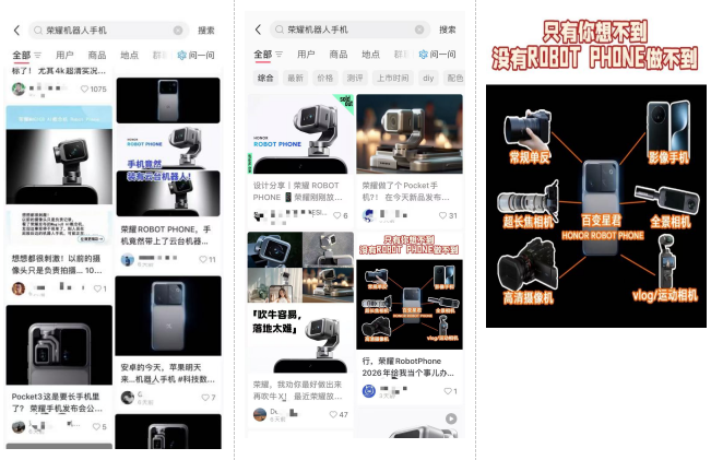 就好像荣耀Robot Phone的出现,像是一支从意想不到的方向杀出的“奇兵”。它虽没有正面硬刚大疆、影石在运动相机方面的能力,但是通过重新定义“什么是拍摄”“如何拍摄”,荣耀将Robot Phone打造成了陪伴级的“新物种”,能建议、能分析、能给情绪价值,这样一个活灵活现的“宠物”,间接解构了大疆、影石核心产品的价值。